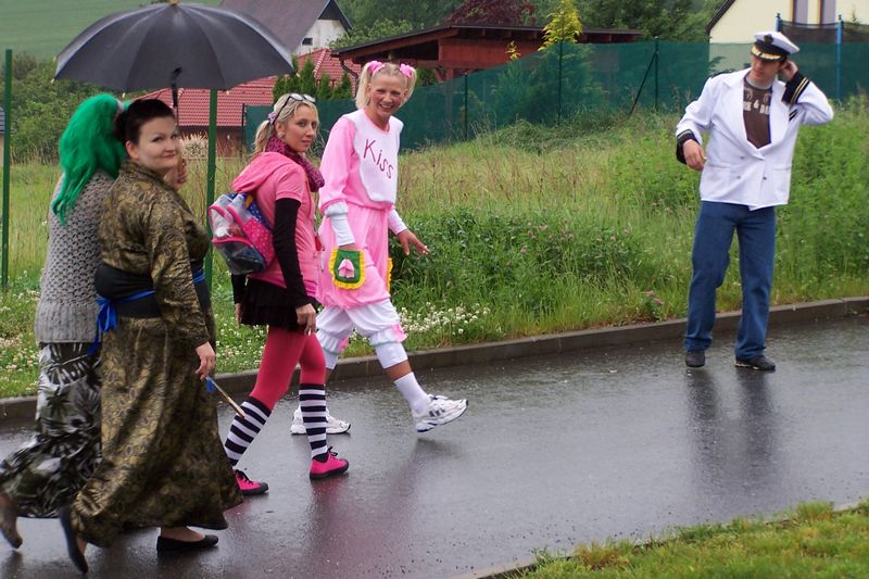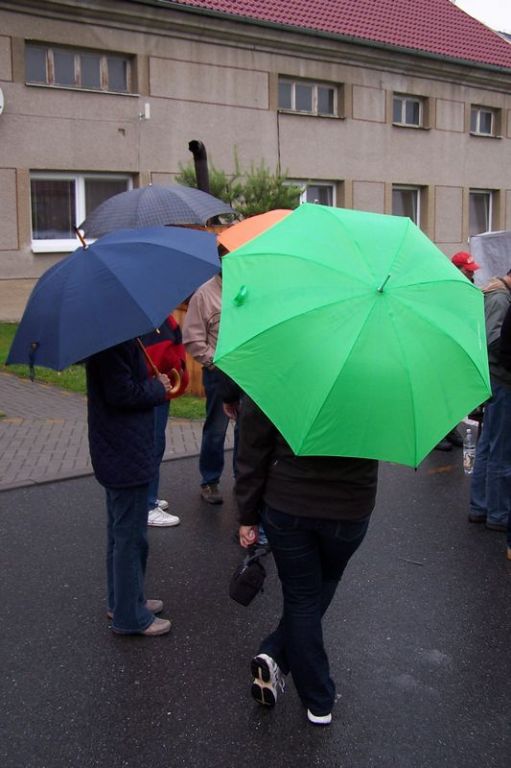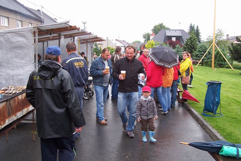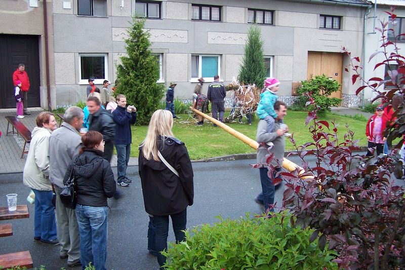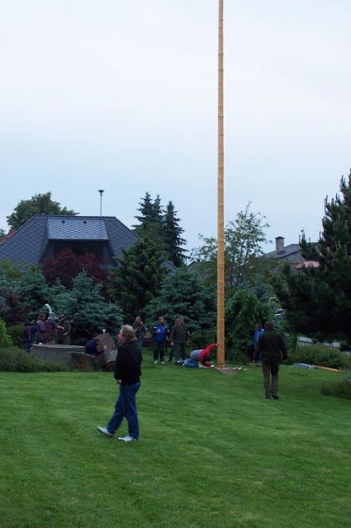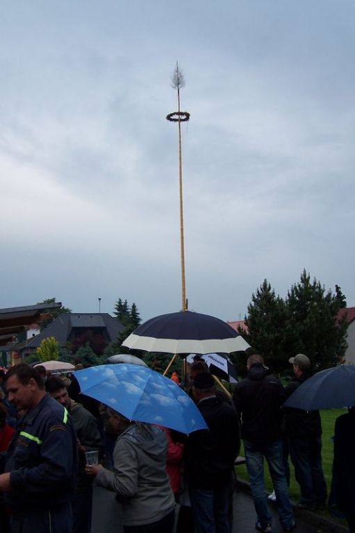 Stejně jako v roce 2009 doprovázel dopolední "zvací výbor" déšť. Déšť nás neopouštěl ani v odpoledních hodinách. Přesto byl máj nakonec pokácen (s menšími technickými problémy), dobroty snězeny, tekutiny vypity, tombola rozebrána... Ať žije máj 2012.
