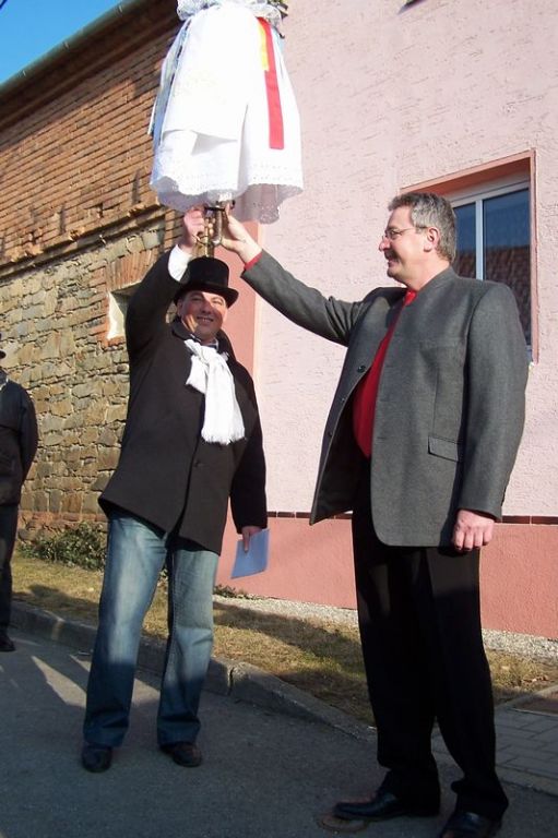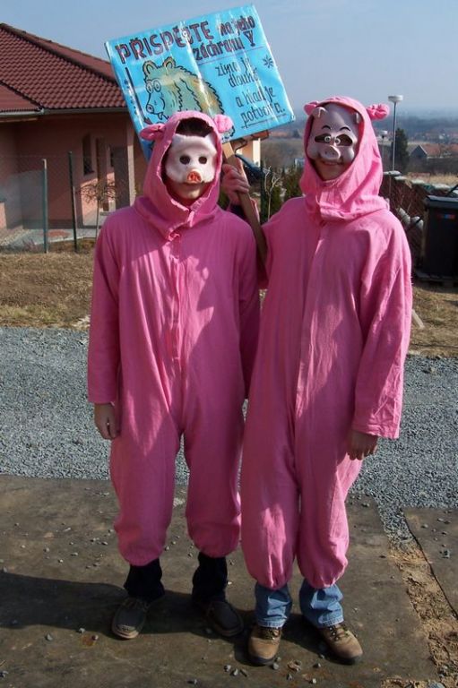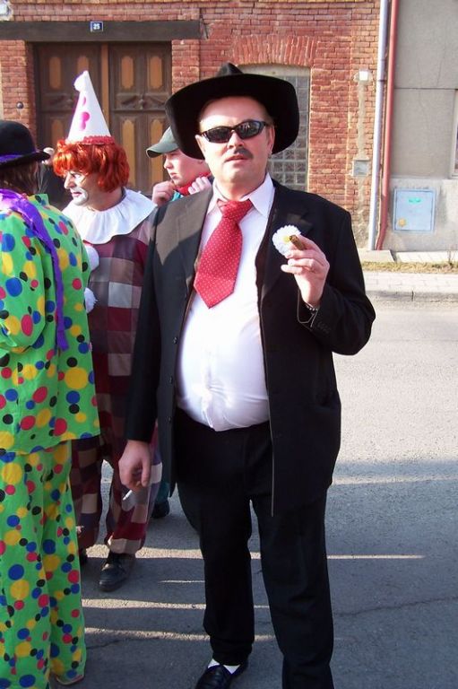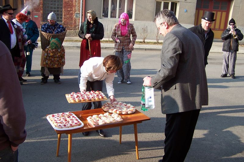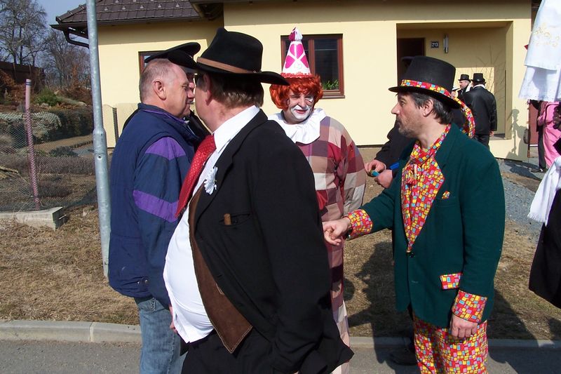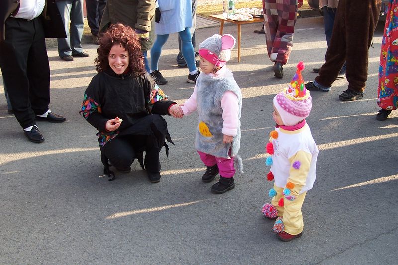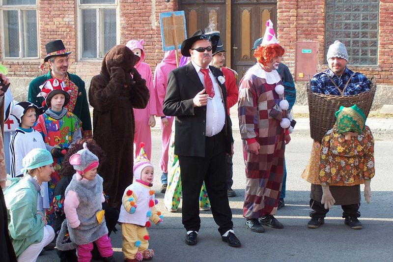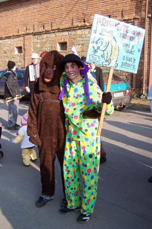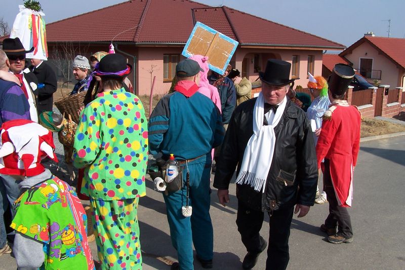 Letošní slunečné počasí provázelo průvod masek celou obcí.