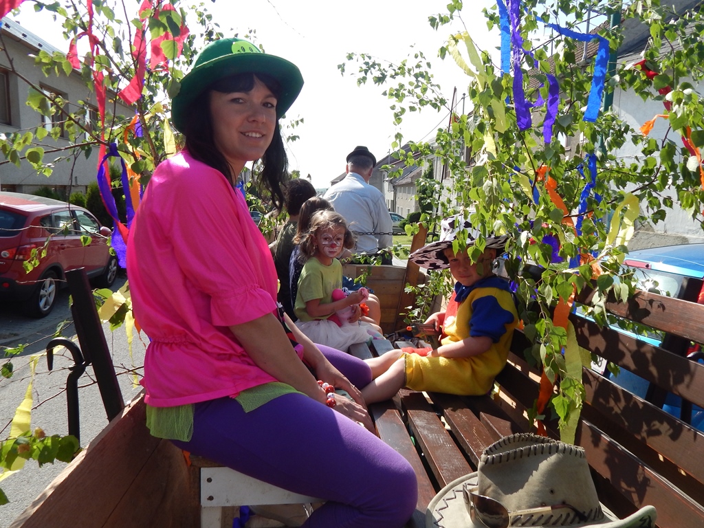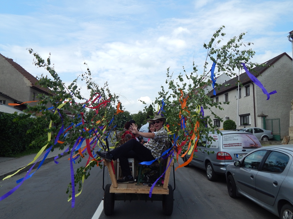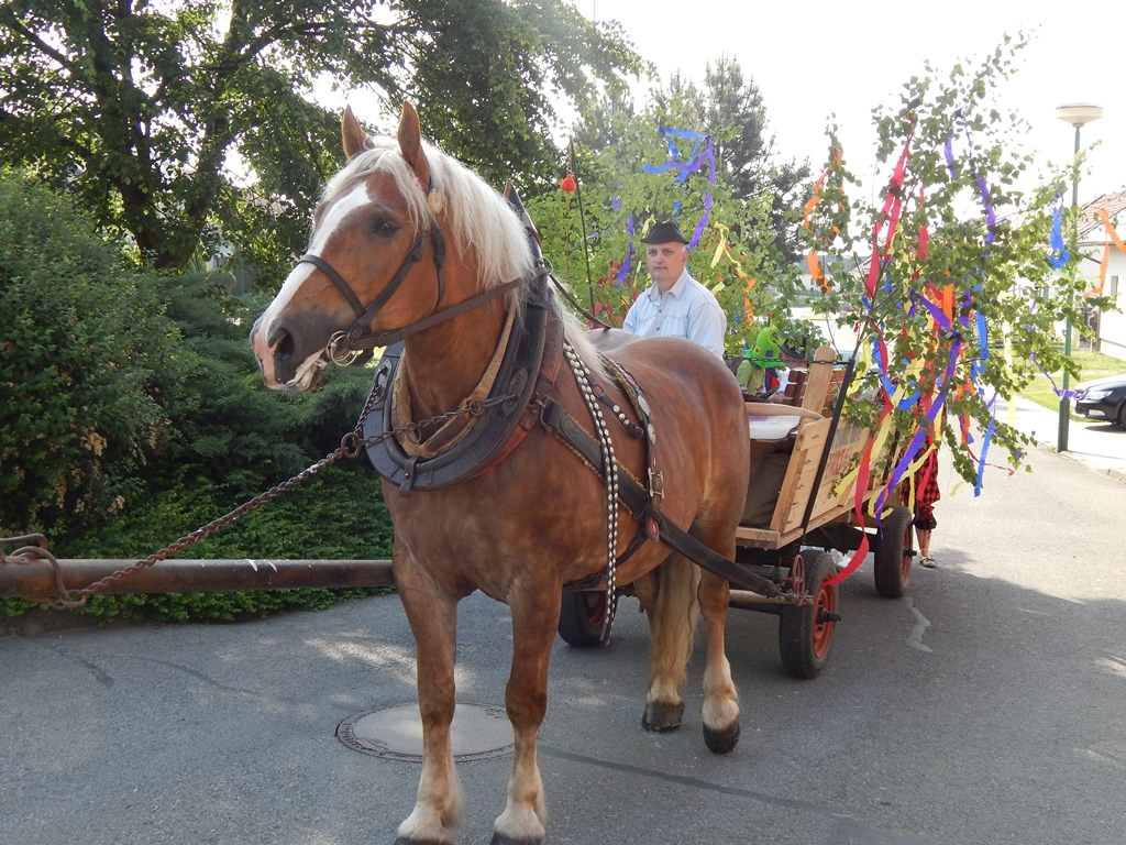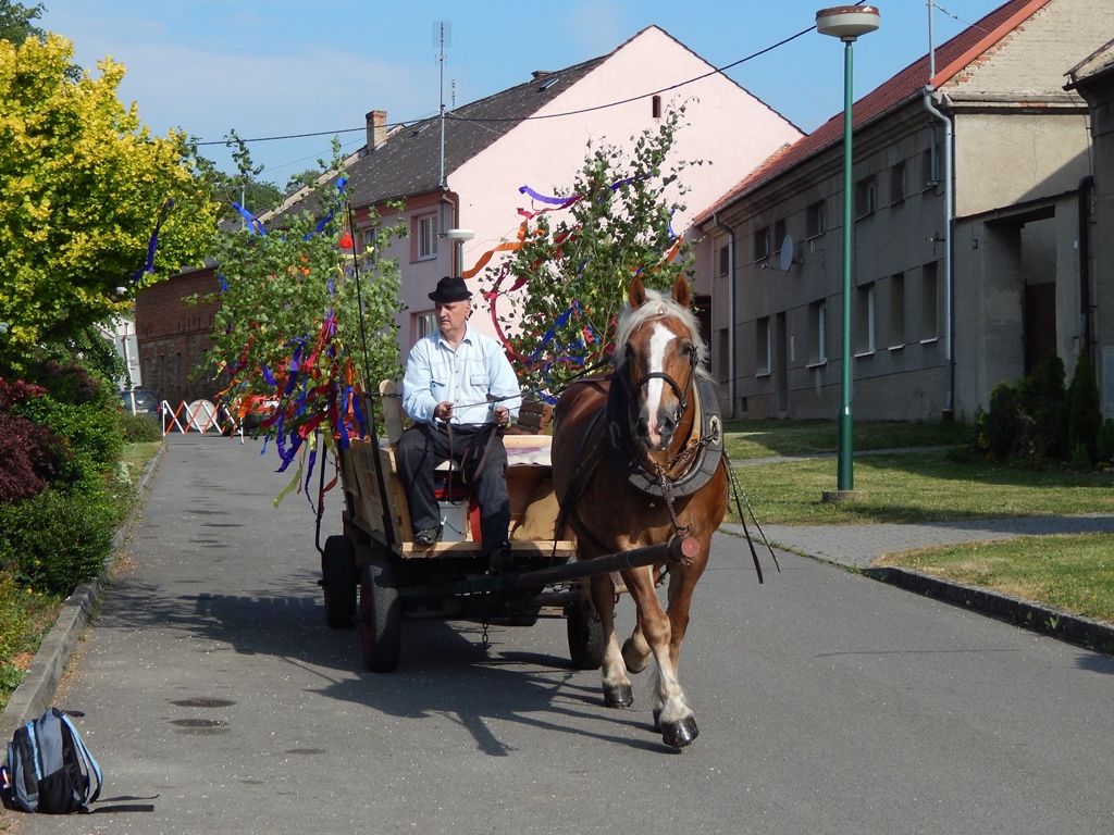 Koňský potah + "zvací výbor" - živá reklama pro naše kácení máje.