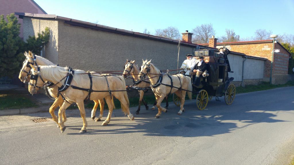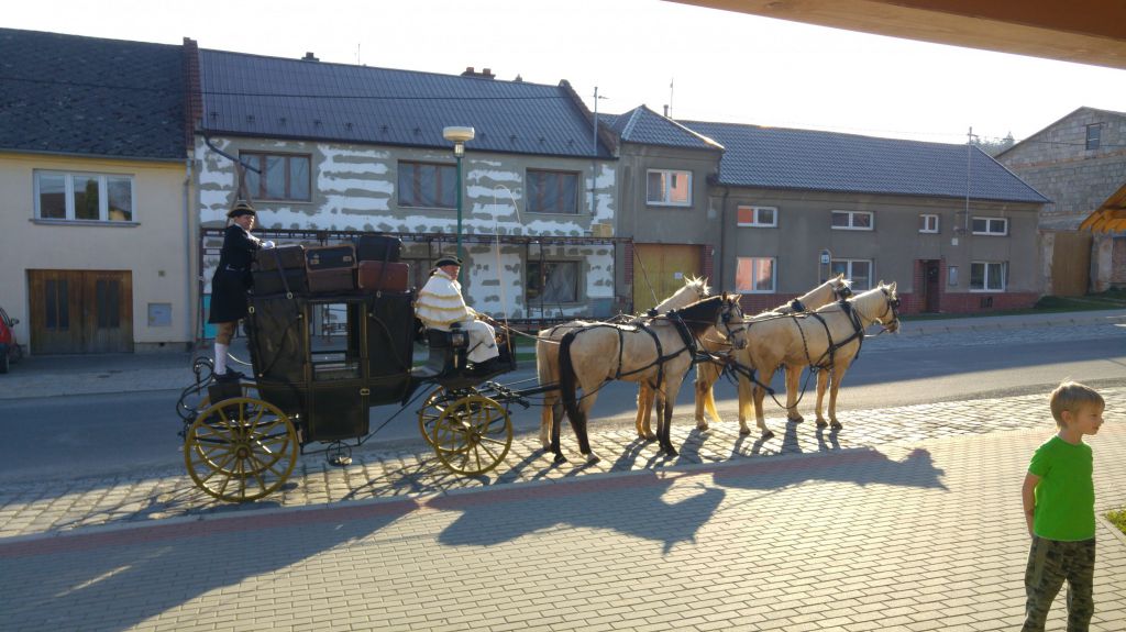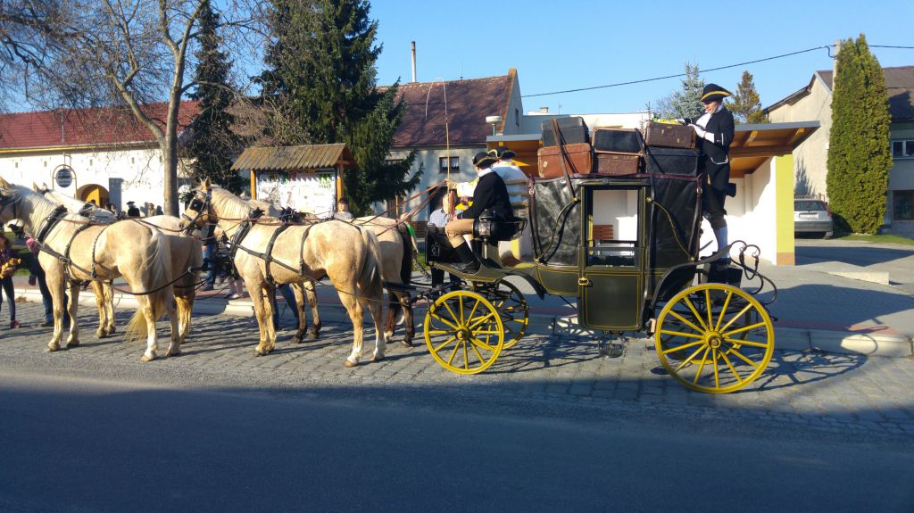 Po dvou letech jsme v naší obci uvítali cestovní kočár pana Václava Obra s doprovodem při příležitosti zahájení sezóny Muzea kočárů v Čechách pod Kosířem.