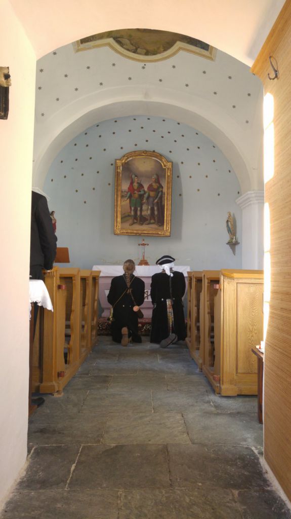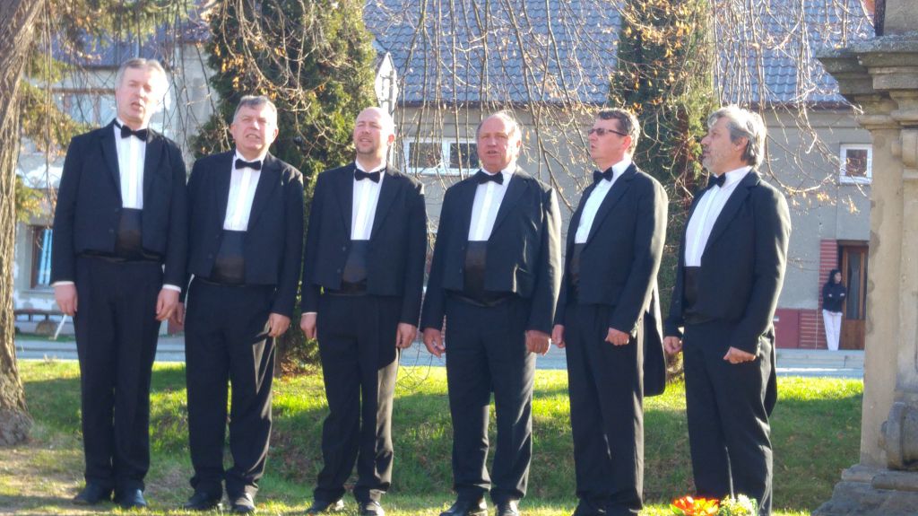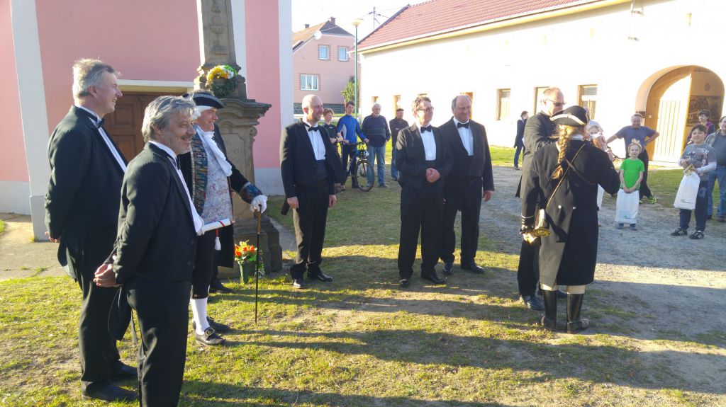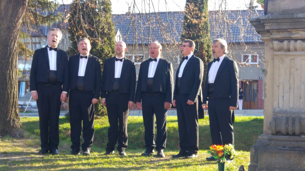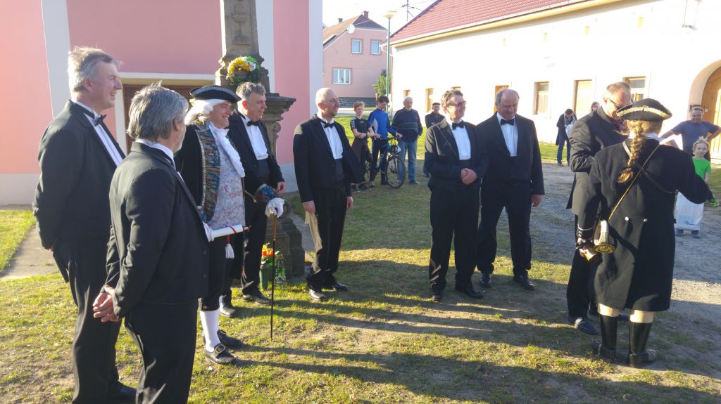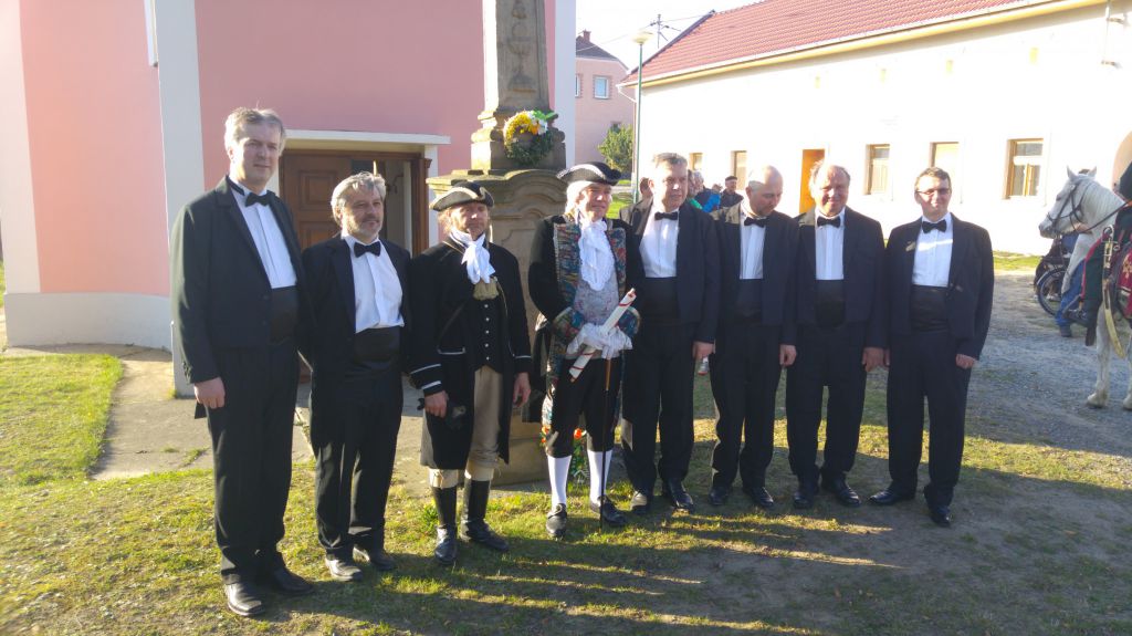 Přivítání chlebem a solí se jim doslalo také od pana místostarosty Ing. Romana Luczky, zpěvem pak vítal hosty pěvecký sbor Slavík.