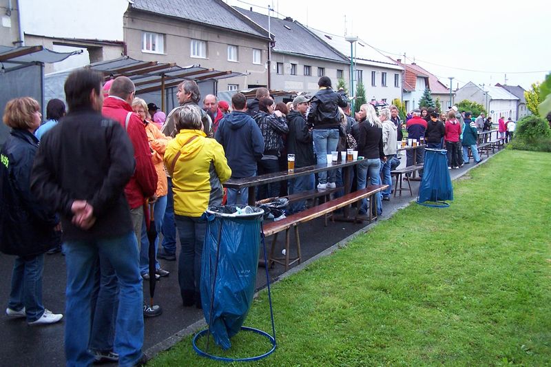 Stejně jako v roce 2009 doprovázel dopolední "zvací výbor" déšť. Déšť nás neopouštěl ani v odpoledních hodinách. Přesto byl máj nakonec pokácen (s menšími technickými problémy), dobroty snězeny, tekutiny vypity, tombola rozebrána... Ať žije máj 2012.