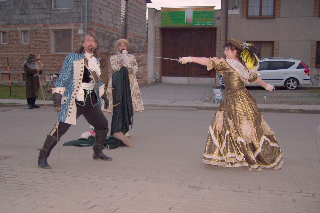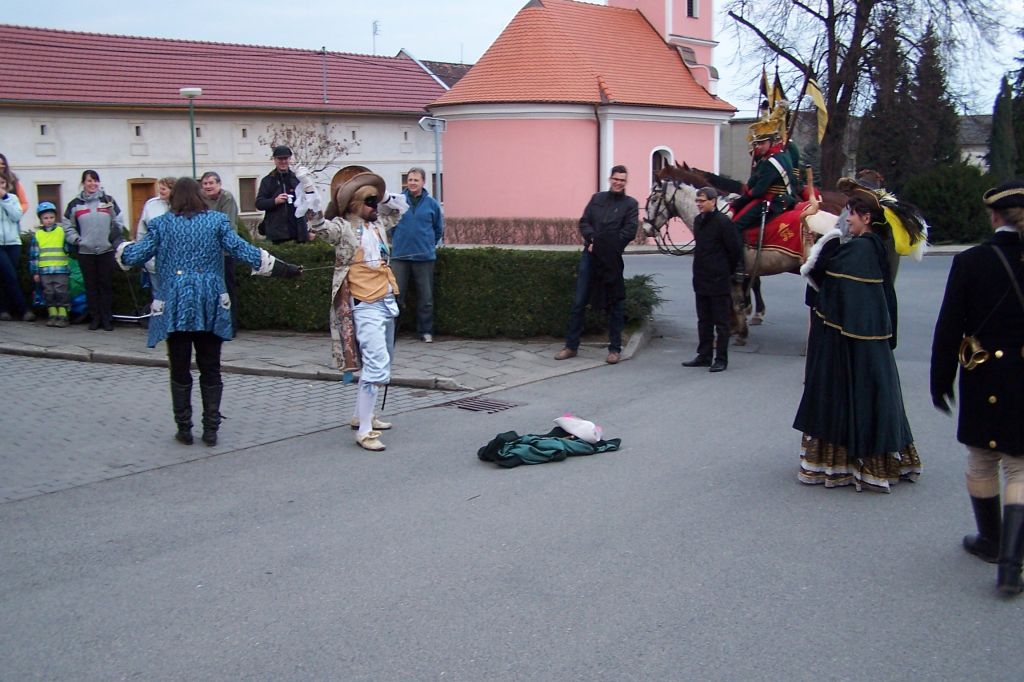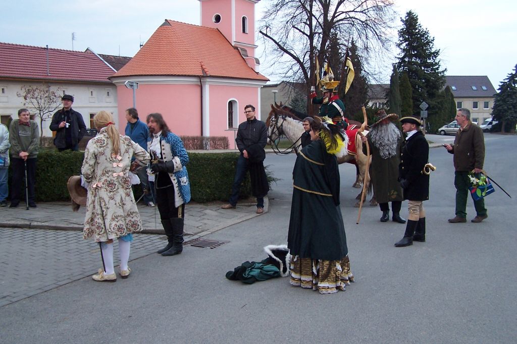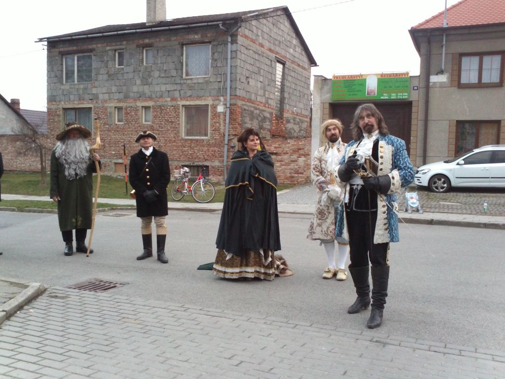 Pod prapory historického muzea kočárů v Čechách pod Kosířem zavítalo do naší obce v sobotu vpodvečer kočovné divadlo Equipáž. Herce, vozataje, pana Václava Obra spolu s představiteli kraje a okolních obcí uvítal v naší obci starosta pan Jaromír Crha a Kosířan za přítomnosti četného publika. Po krásné ukázce z historie kočárového cestování pokračovala celá společnost spolu s Kosířanem směrem na Velký Kosíř.
