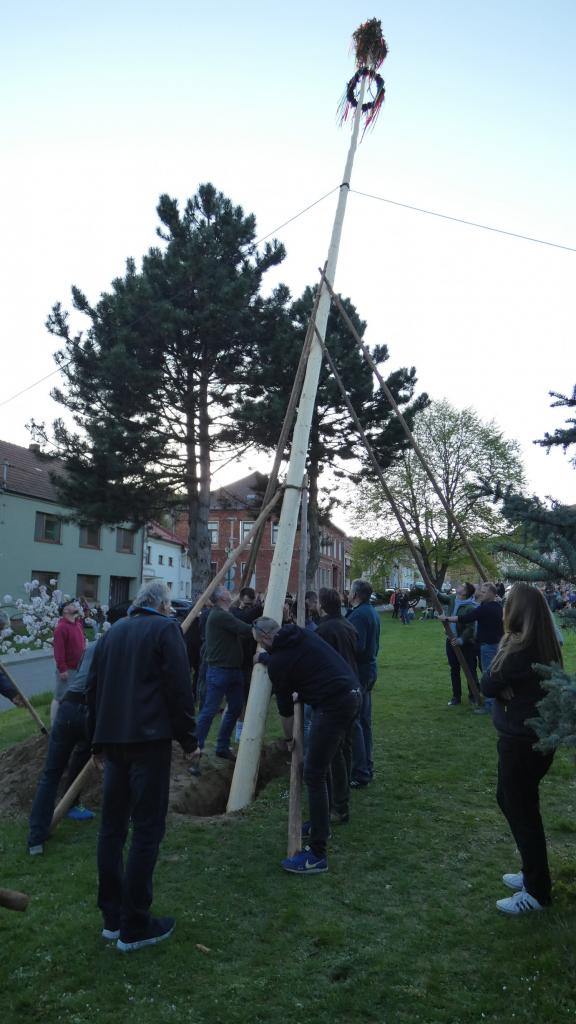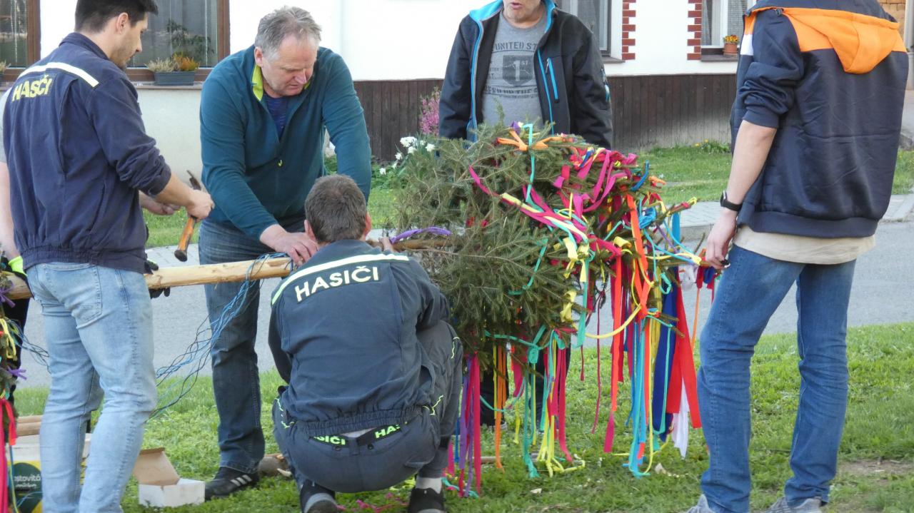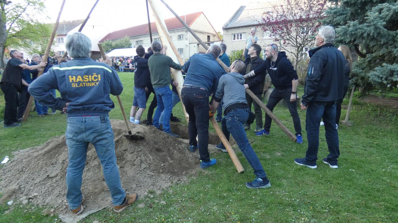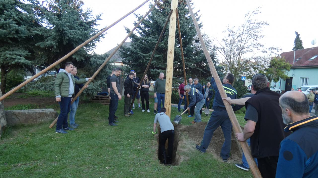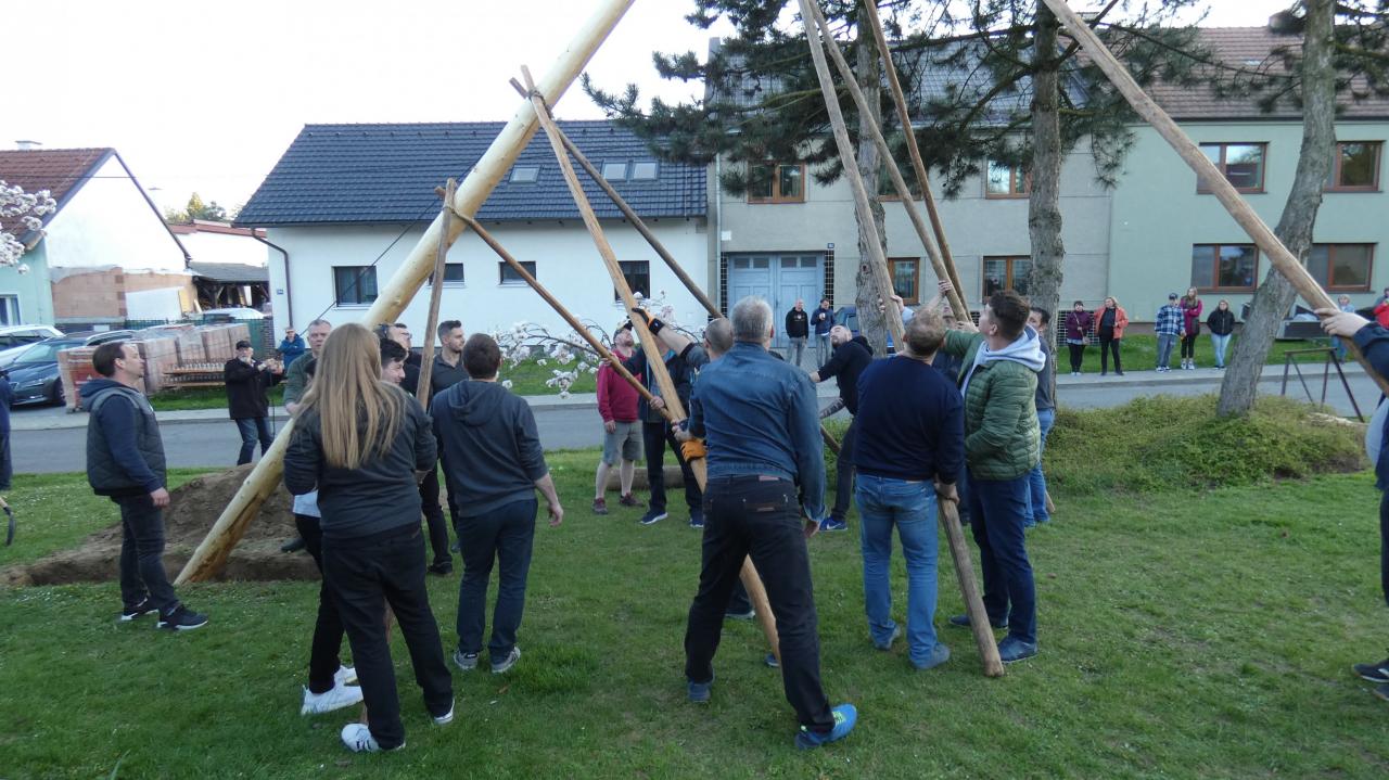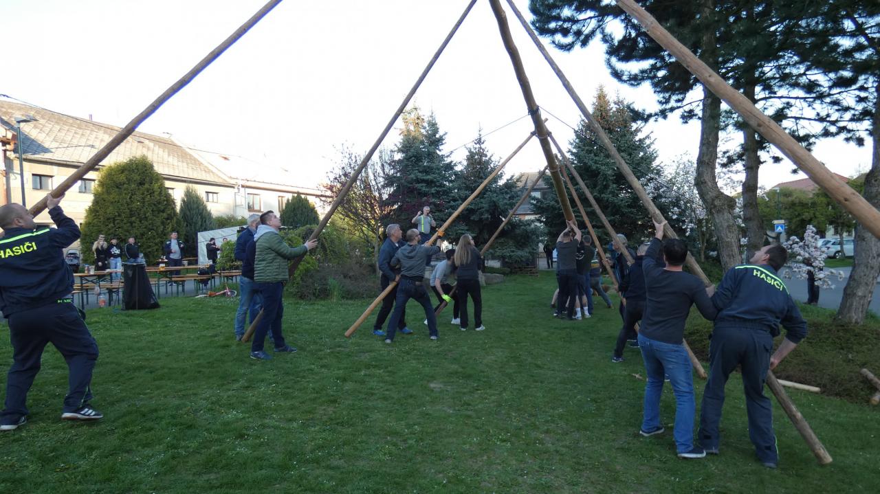 Krásné počasí přálo účastníkům tradiční podívané při stavění máje.